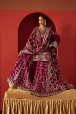 MAGENTA RAW SILK 39″ EMBROIDERED SHARARA 10 PCS