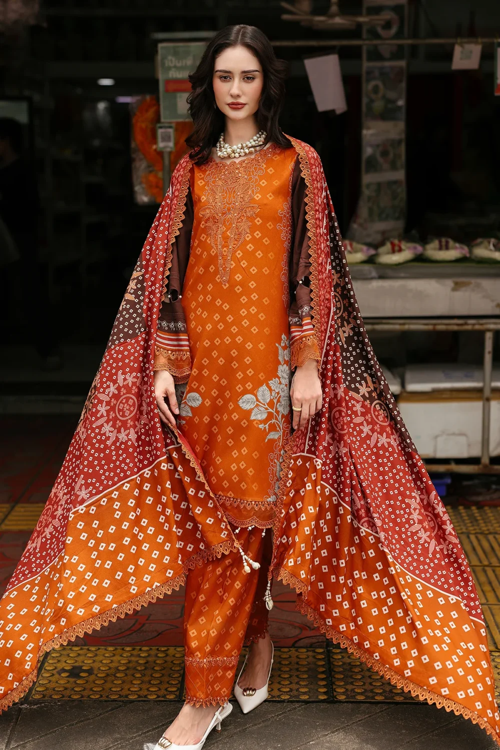 Embroidered Printed Staple Front 1.25 Meter Printed Staple Back and Sleeves 2 Meter Embroidery Sleeves & Front and Back Daman Patti 3 Meter Embroidered Trouser Patti 1.25 Meter Printed Staple Trouser 2.50 Meter Embroidered Shawl Pallu Patti 2.25 Meter Embroidered Printed Staple Shawl 2.50 Meter