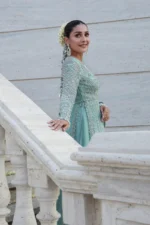 Embroidered Sleeves on Chiffon with Hand Embellished