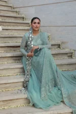 Embroidered Front Body on Chiffon with Hand Embellished