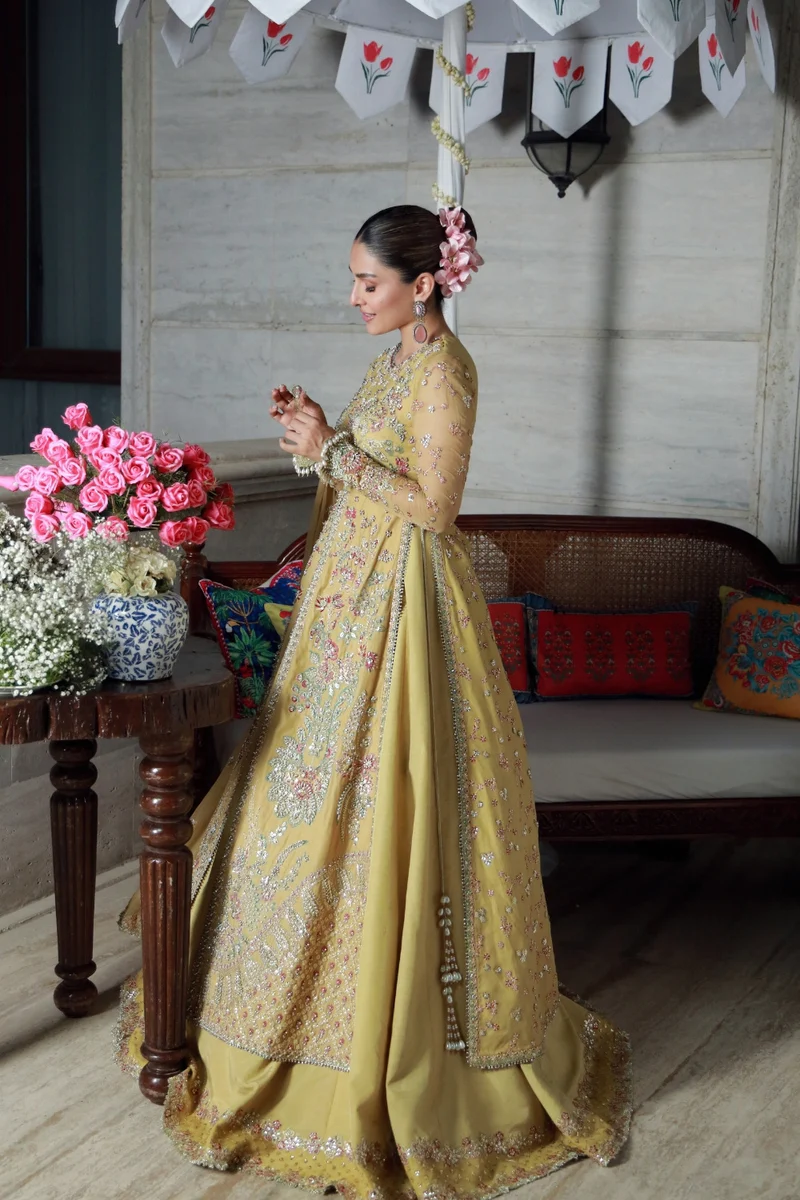 Embroidered Sleeves Motifs on Organza with Hand Embellished