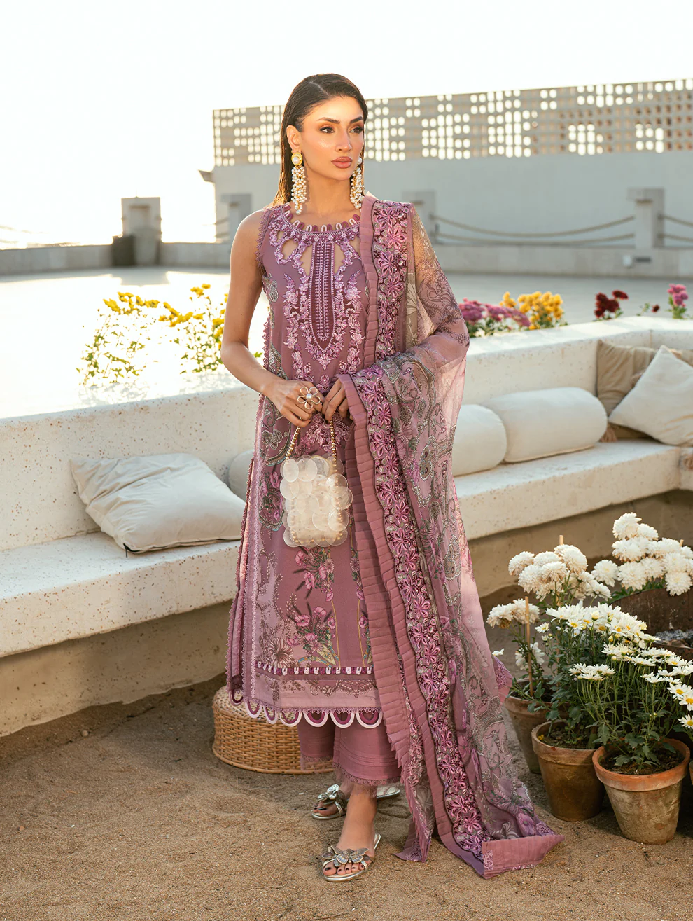 2.5M Cutwork Embroidered Chiffon Dupatta