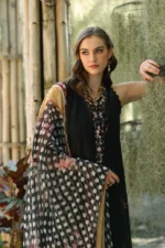 Our final design is a classic co ords set that exudes timeless sophistication. Black co ord set with embroidered neckline border and hem border. Paired with a classic polka dot digital printed chiffon dupatta for a touch of whimsy. Perfect for any occasion, this ensemble is sure to turn heads