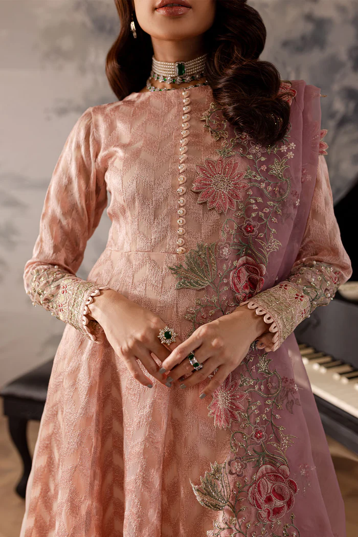 - Embroidered Organza Front & Back Daman Borders