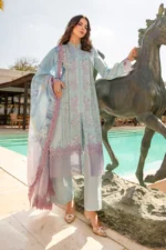 Embroidered shirt front on digital printed lawn 1.25 yards