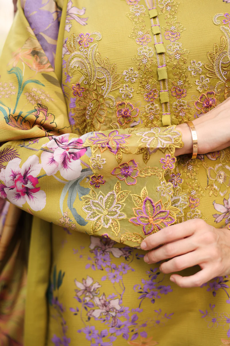 Dyed Organza Embroidered Front Neck Line 1 Pc