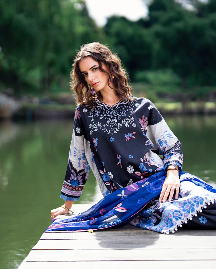 Roheenaz Garden Veil Printed Lawn | BlackBerry Frost